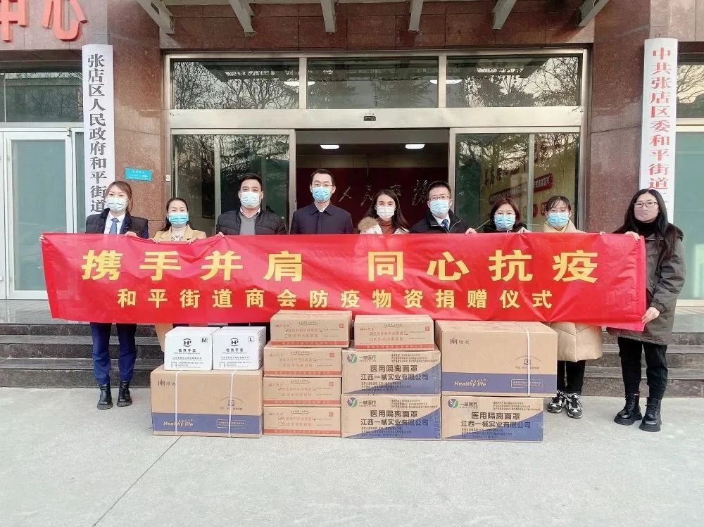 12月2日,张店区工商联、和平街道商会向和平街道办事处捐赠防疫物资。
